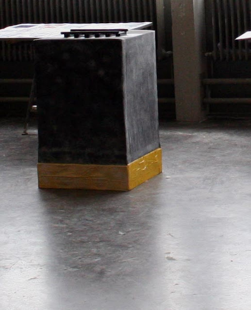 The box - carton, metal, nylon, wood, glue, ink, acrylic paint, spray paint and wall paint.